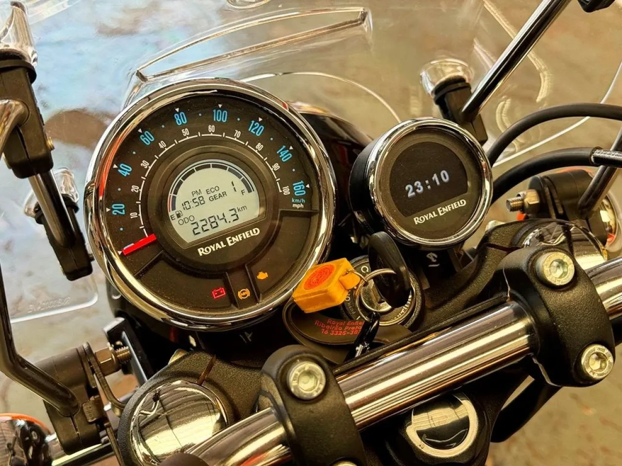 Partida elétrica, freios à disco dianteiro e traseiro, computador de bordo.